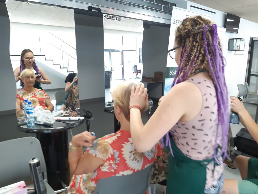 W piątek (29 czerwca br.) uczniowie CSR Gniezno, którzy kształcą się w zawodzie fryzjer, pod opieką Pedagoga Szkolnego – Krystyny Żok, wzięli aktywny udział w tegorocznych Gnieźnieńskich Senioraliach. Pomimo trwających wakacji (letniej przerwy w zajęciach szkolnych), przedstawiciele Społeczności Cechowej Szkoły Rzemieślniczej w Gnieźnie w sposób niezwykle twórczy zaangażowali się w organizację Święta Seniorów. Nasi Fryzjerzy, będąc pod przemożnym wpływem spotkania z Panem Tomaszem Drabem (wielokrotnie utytułowanym Mistrzem Fryzjerstwa), a w szczególności tego, co przekazał młodym adeptom fryzjerstwa, zaproponowali Gnieźnieńskim Seniorom modne, letnie fryzury. Dzięki kunsztowi Młodych Mistrzów Nożyczek z CSR Gniezno, każdy uczestnik Senioraliów, mógł odmienić swój wygląd – zyskać nową, trendy fryzurę 🙂