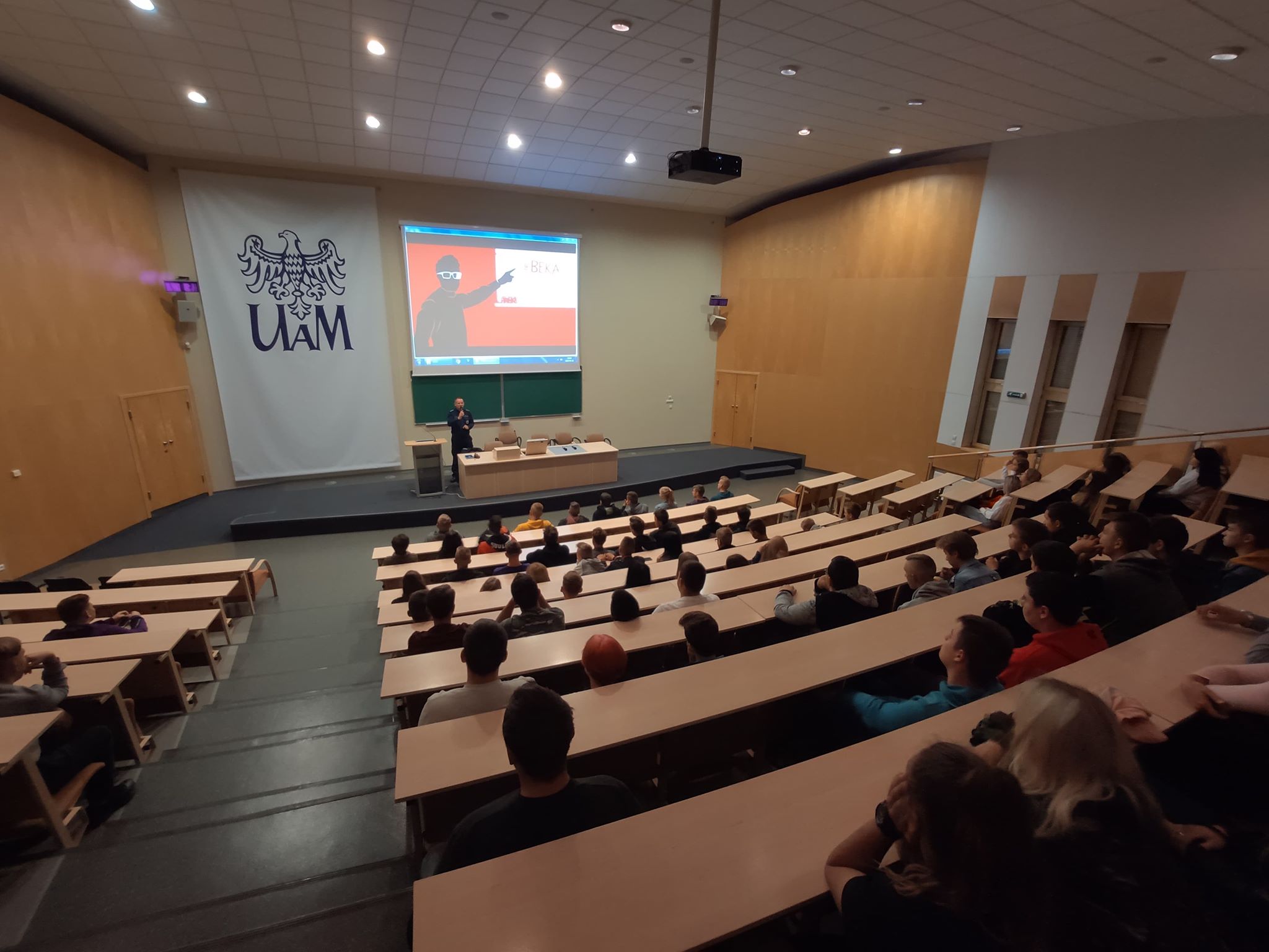 W środę 25 września br. profilaktyk społeczny z Komendy Powiatowej Policji w Gnieźnie – asp. szt. Krzysztof Socha – spotkał się z uczniami oraz gronem pedagogicznym Cechowej Szkoły Rzemieślniczej w Gnieźnie. Prelekcja, której towarzyszyła niezwykle interesująca rozmowa z młodymi ludźmi, odbyła się w ramach kampanii Narkotyki i dopalacze zabijają. Niniejsza inicjatywa, której hasło brzmi Szkoda Ciebie na takie patoklimaty, ma na celu zwiększenie świadomości młodych ludzi na temat zagrożeń związanych z zażywaniem narkotyków i dopalaczy. W ramach prelekcji funkcjonariusz policji poinformował młodzież o tym, jak narkotyki i dopalacze zaburzają rozwój oraz wyniszczają organizm. Podkreślił przy tym, że zażycie tych zabronionych substancji ma wpływ na proces uczenia się, życia społecznego i rodzinnego. Jak zauważył prelegent, narkotyki i dopalacze są przyczyną wielu konfliktów, zaburzeń psychicznych, w których wahania nastroju mogą prowadzić w ostateczności do myśli samobójczych. Dlatego też tak ważne jest, aby młodzież wiedziała, że nie warto próbować żadnych substancji psychoaktywnych. Jeden raz może prowadzić do uzależnienia, a to już pociąga za sobą szereg konsekwencji na wiele lat. Żadna ułudna chwila pod wpływem środków odurzających, nie zastąpi świadomego życia w trzeźwości.