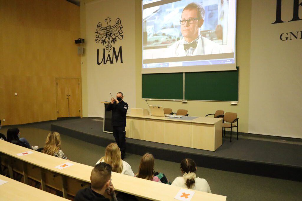 W czwartek 10 marca odbyło się spotkanie uczniów z tygodnia B Cechowej Szkoły Rzemieślniczej w Gnieźnie z profilaktykiem społecznym z Komendy Powiatowej Policji w Gnieźnie – aspirantem sztabowym Krzysztofem Sochą. Spotkanie zostało poświęcone zagrożeniom związanym z zażywaniem narkotyków i dopalaczy, jak również kwestiom szeroko pojętego bezpieczeństwa.