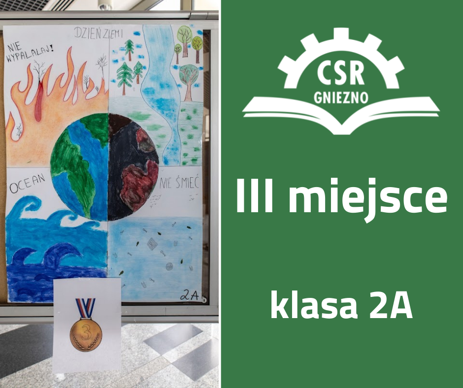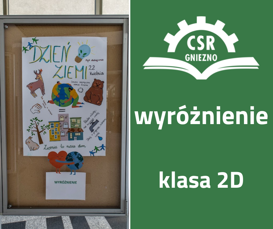 W piątek 22 kwietnia br. EkipaCSR uroczyście obchodziła DzieńZiemi, w ramach którego odbyły się konkursy oraz „specjalne wydarzenie – eko2022”. Podczas pierwszej konkurencji uczniowie CSR Gniezno zaprezentowali swoje talenty plastyczne, przygotowując plakaty poświęcone tematyce troski o Ziemię, nasz wspólny dom. Ostatecznie, decyzją Jury wygrała praca klasy 3Bp, drugie miejsce zajęła klasa 3Bg, trzecie miejsce przypadło klasie 2A. Ponadto wyróżniono działa uczniów z klas: 2D oraz 1C. Laureatom serdecznie gratulujemy ![]()