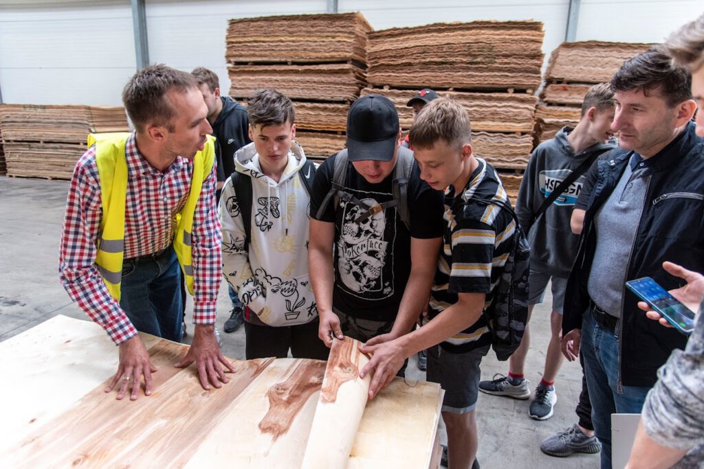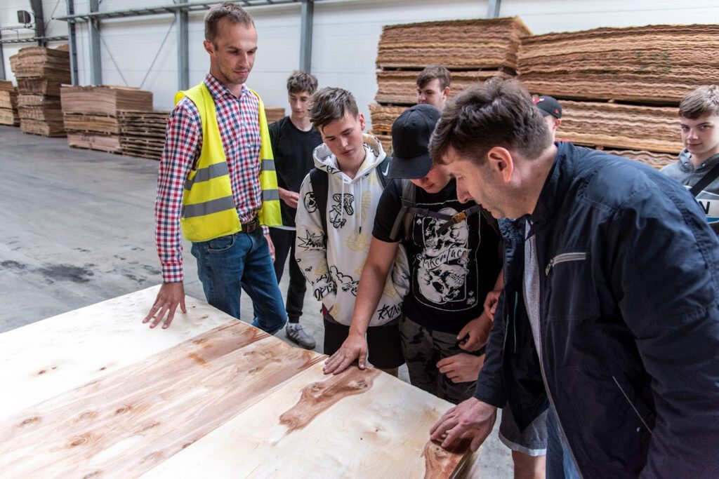 Jeszcze przed końcem roku szkolnego, ale już w nieco wakacyjnej atmosferze, stolarze z Ekipy CSR, pod opieką nauczycieli przedmiotów zawodowych: Stanisława Przybylskiego oraz Przemysława Jarosza, udali się w środę 15 czerwca br. na wycieczkę dydaktyczną do zakładu Sklejka Orzechowo, gdzie mieli okazję zapoznać się z innowacyjnymi technologiami produkcji różnego rodzaju sklejek oraz płyt drzwiowych i stolarskich. Tego typu wyjazdy są bardzo ważnym elementem teoretycznej nauki zawodu, bowiem prawdziwy fachowiec – nowoczesny rzemieślnik, obok znajomości zagadnień technologicznych, musi znać również materiał z którym pracuje. Cieszymy się, że uczniowie Cechowej Szkoły Rzemieślniczej w Gnieźnie dzięki uprzejmości Władz Przedsiębiorstwa Sklejka Orzechowo, otrzymali wiele cennych, fachowych informacji mających wpływ na pogłębianie ich wiedzy zawodowej.