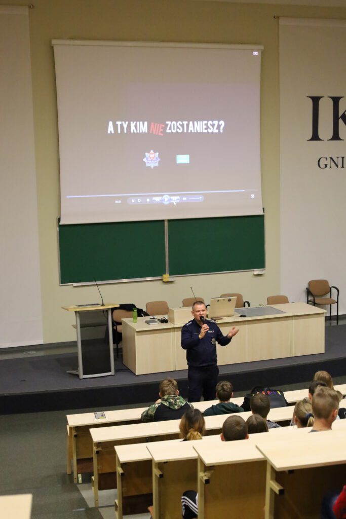 W czwartek z uczniami Cechowej Szkoły Rzemieślniczej w Gnieźnie spotkał się Profilaktyk Społeczny z Komendy Powiatowej Policji w Gnieźnie – asp. sztab. Krzysztof Socha. W trakcie spotkania poruszono tematy związane z zagrożeniami występującymi w internecie, w tym zjawiskiem hejtu oraz niebezpieczeństwami dotyczącymi zażywania narkotyków oraz dopalaczy.