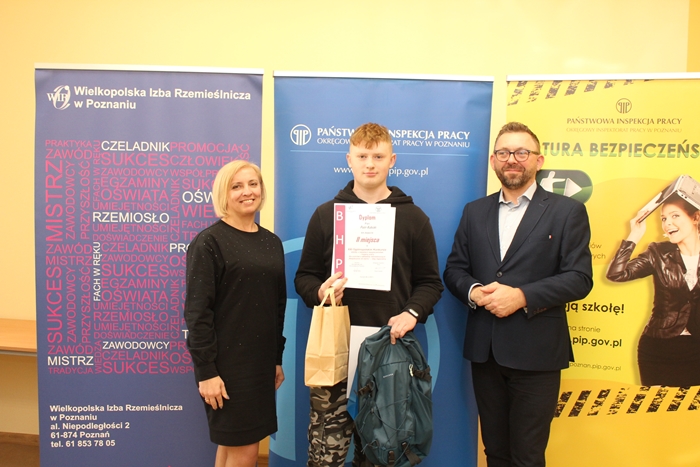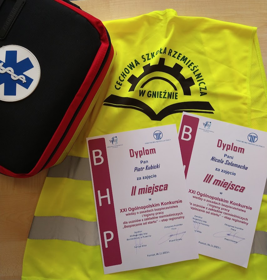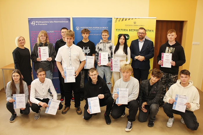 W poniedziałek 6 listopada przedstawiciele Cechowej Szkoły Rzemieślniczej w Gnieźnie wzięli udział w XXI edycji etapu regionalnego Konkursu wiedzy o zasadach bezpieczeństwa i higieny pracy dla uczniów z zakładów rzemieślniczych „Bezpiecznie od startu”, która odbyła się w siedzibie Wielkopolskiej Izby Rzemieślniczej w Poznaniu.