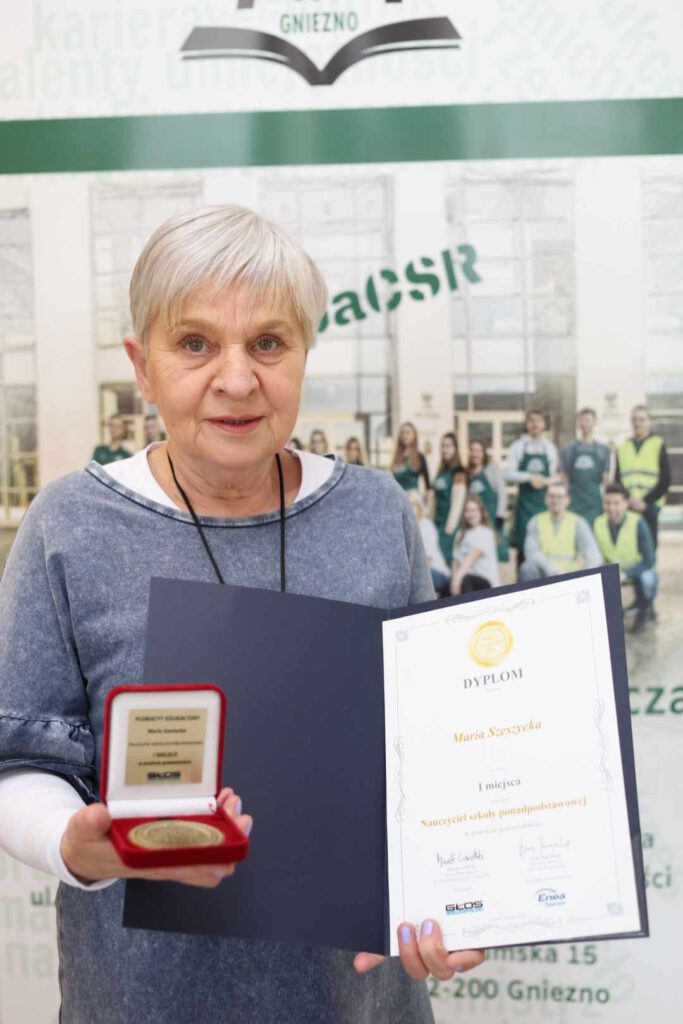 We wtorek 23 stycznia odbyła się gala Plebiscytu Edukacyjnego „Głosu Wielkopolskiego”, podczas której uhonorowano najlepszych wielkopolskich nauczycieli. Laureatką pierwszego miejsca w kategorii Nauczyciel Szkoły Ponadpodstawowej w powiecie gnieźnieńskim została nauczycielka CSRGniezno – Maria Szeszycka. Serdecznie gratulujemy tego zaszczytnego wyróżnienia i życzymy dalszych sukcesów na pedagogicznej niwie.