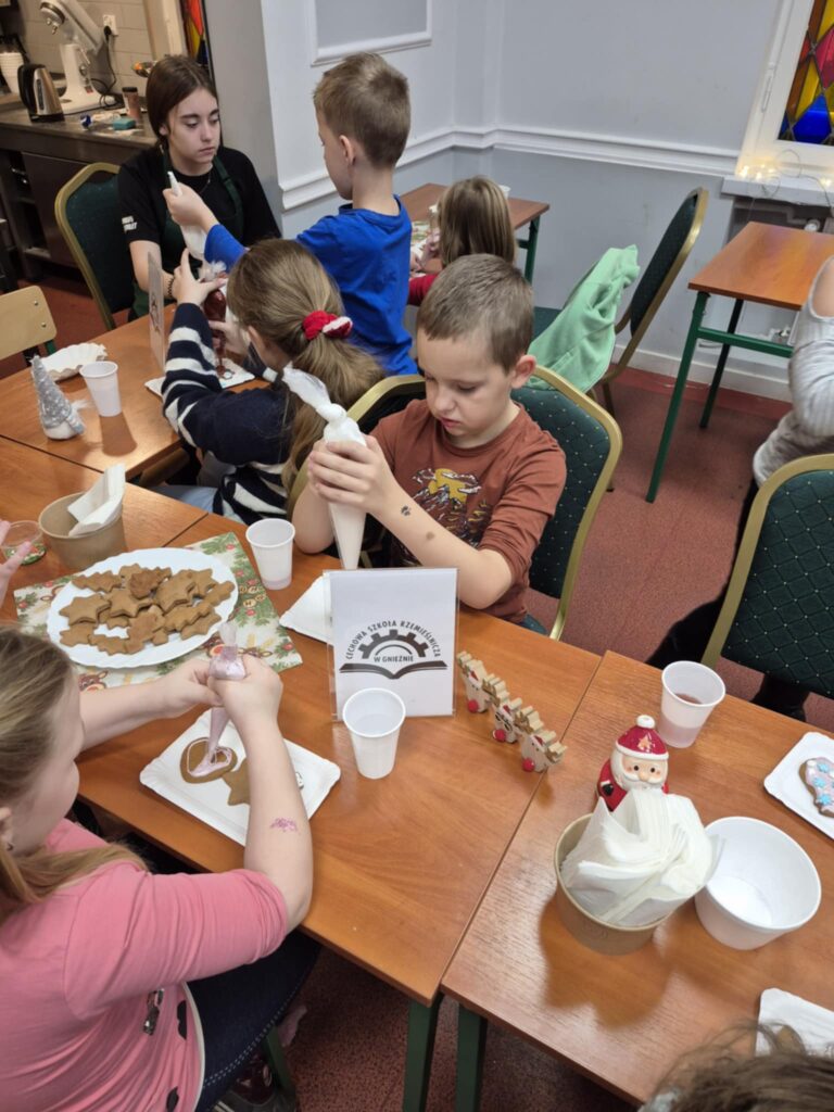 Mieliśmy przyjemność gościć uczniów klasy 2 ze Szkoły Podstawowej nr 5 w Gnieźnie oraz przedszkolaki z Przedszkola Milenium Mali Odkrywcy. Dzieci miały okazję poznać tajemnice korzennych przypraw, takich jak cynamon, goździki czy imbir, a także samodzielnie udekorować pachnące pierniczki.