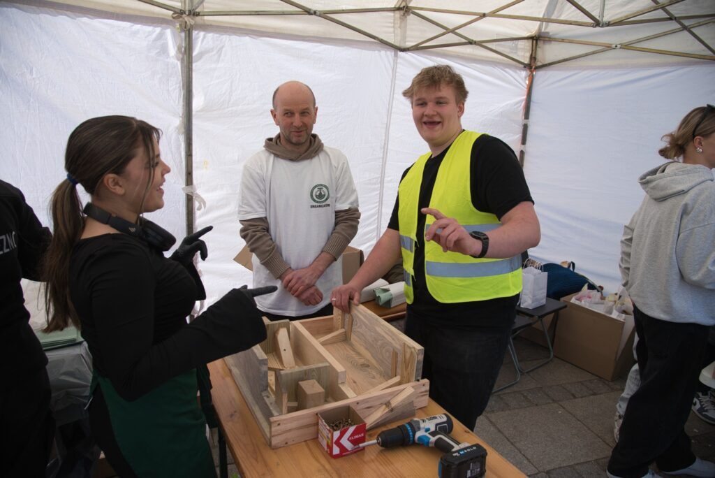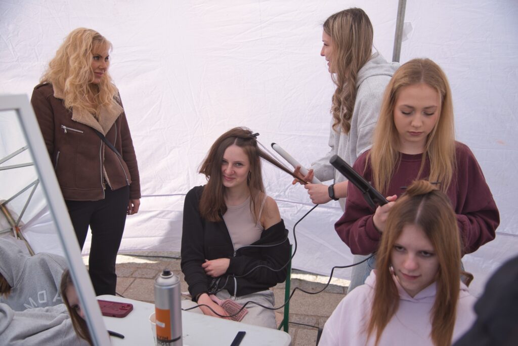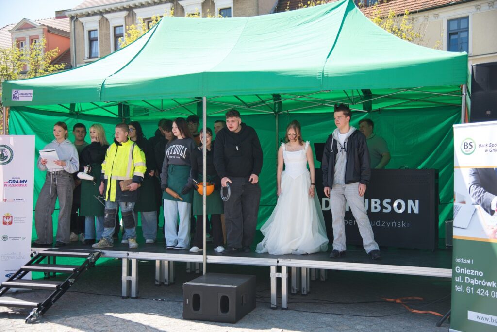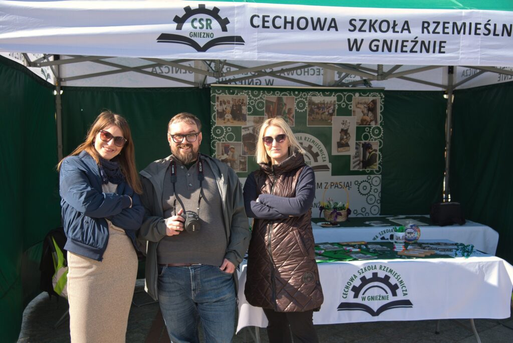 Cechowa Szkoła Rzemieślnicza w Gnieźnie aktywnie uczestniczyła w Festiwalu Rzemiosła zorganizowanym przez Cech Rzemiosła i Małej Przedsiębiorczości w Gnieźnie. Wydarzenie było doskonałą okazją do zaprezentowania umiejętności naszych uczniów, a także promocji kształcenia zawodowego wśród młodzieży i lokalnej społeczności. Uczniowie szkoły zaangażowali się w przygotowanie cateringu, który cieszył się dużym zainteresowaniem uczestników festiwalu. Istotnym punktem programu był również pokaz mody roboczej, podczas którego zaprezentowano różnorodność zawodów oraz profesjonalny wizerunek współczesnego rzemieślnika. Dużym zainteresowaniem cieszyło się stanowisko fryzjerskie przygotowane przez uczennice kształcące się w zawodzie fryzjer. Odwiedzający mogli nie tylko obserwować ich pracę, ale także skorzystać z usług. Koło Wolontariatu przygotowało gry i aktywności związane z preorientacją zawodową, angażując uczestników w interaktywną formę poznawania różnych ścieżek kariery. Na miejscu funkcjonowało także stanowisko informacyjne szkoły, gdzie można było uzyskać szczegółowe informacje na temat kierunków kształcenia oraz oferty edukacyjnej. Wydarzenie uatrakcyjniły zajęcia taneczne prowadzone przez przedstawicieli Ekipy CSR, które integrowały uczestników festiwalu.