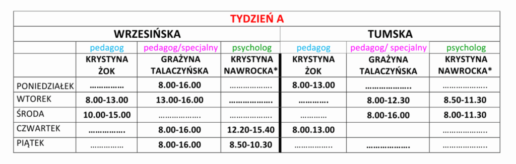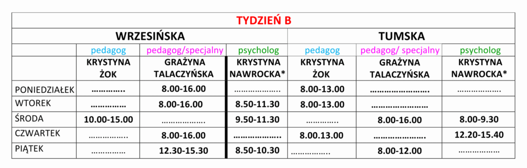 Dyżury Specjalistów w roku szkolnym 2025/2026