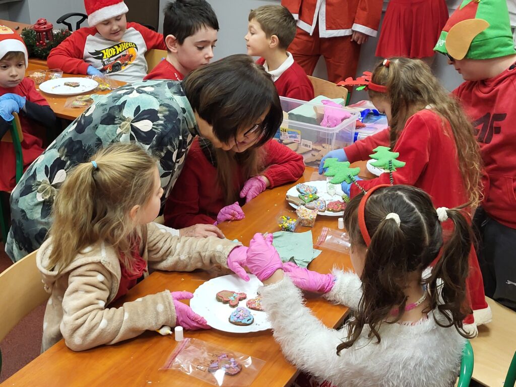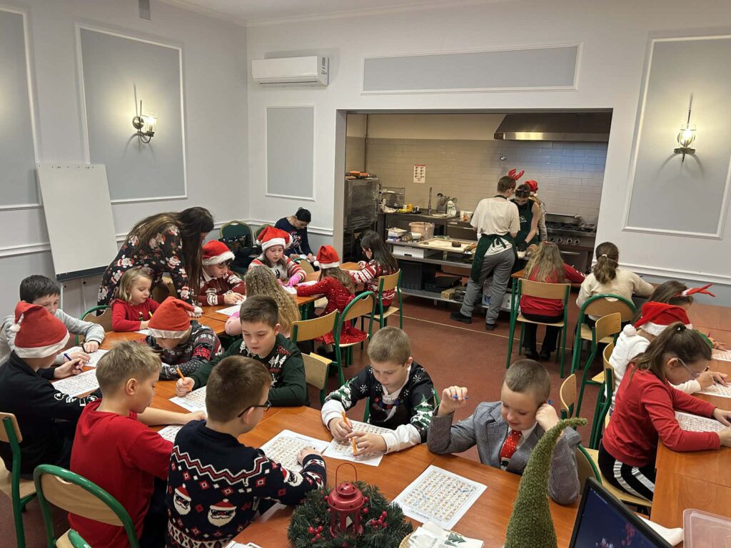 Mieliśmy przyjemność gościć uczniów klasy 2B oraz 3B Szkoła Podstawowa nr 5 w Gnieźnie. Dzieci miały okazję poznać tajemnice korzennych przypraw, takich jak cynamon, goździki czy imbir, a także samodzielnie udekorować pyszne pierniczki przygotowane przez naszych uczniów. Po tej aktywności praktycznej na wszystkich czekały także karty pracy ze świątecznymi łamigłówkami. To była niezwykle inspirująca lekcja smaków, zapachów i kreatywności! Dziękujemy za wspólną zabawę i ciepłą atmosferę!