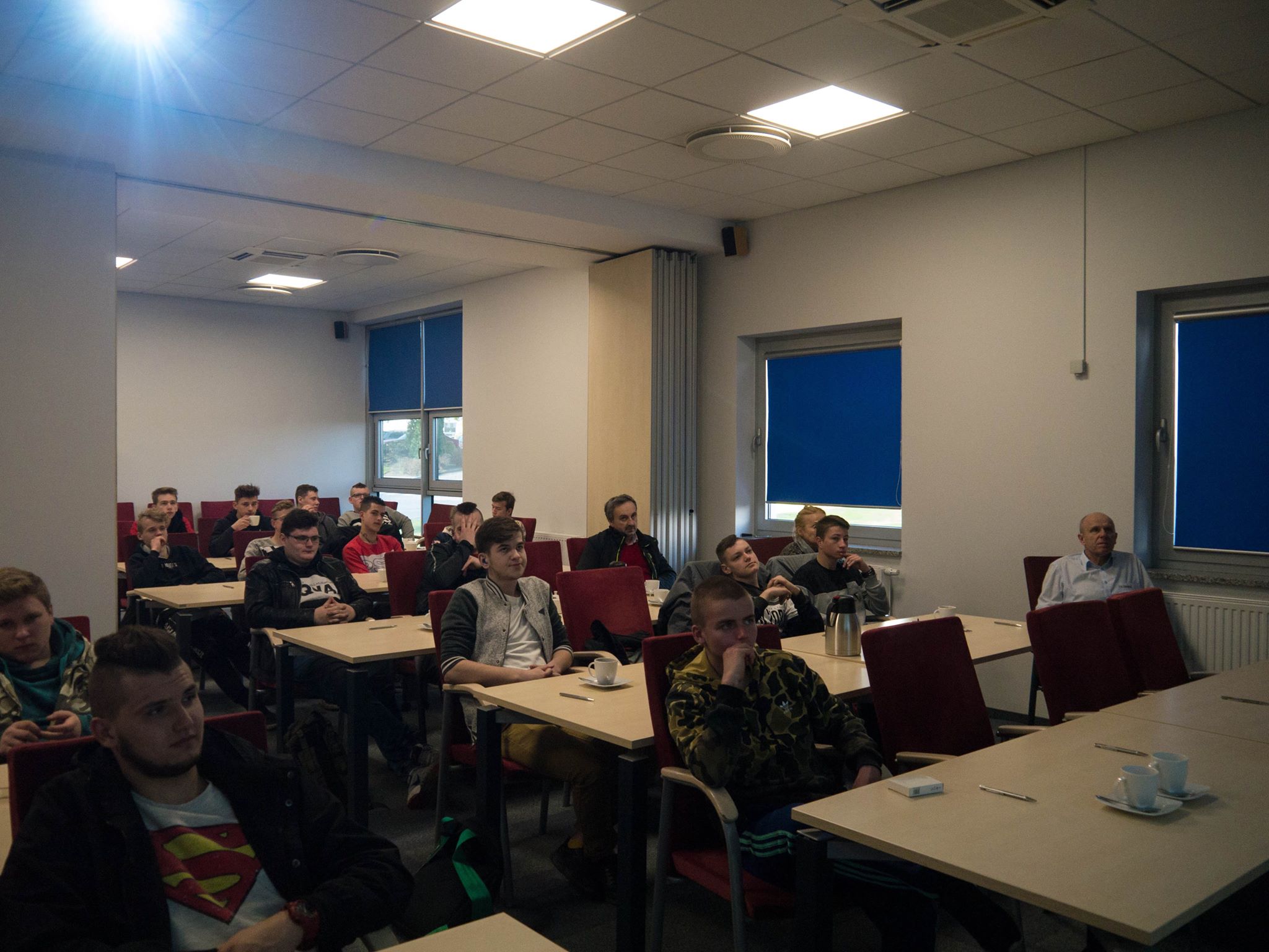 Dyrekcja, nauczyciele oraz uczniowie Cechowej Szkoły Rzemieślniczej w Gnieźnie.