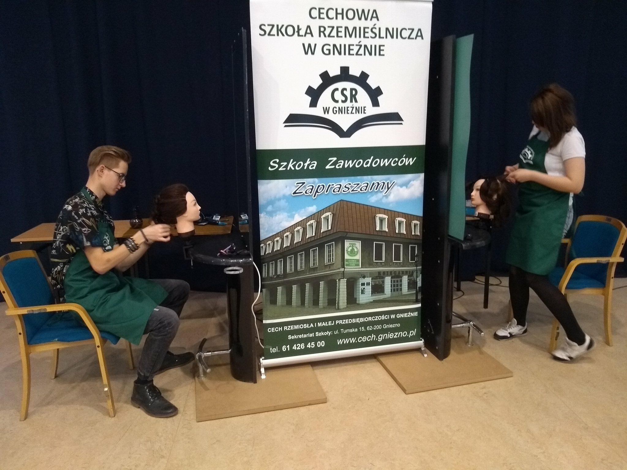 We wtorek 17 kwietnia br. uczniowie Cechowej Szkoły Rzemieślniczej w Gnieźnie, wraz z opiekunami, wzięli aktywny udział w Powiatowych Targach Pracy, które odbyły się w Auli I Liceum Ogólnokształcącego w Gnieźnie. Nasi wychowankowie, kształcący się w zawodzie fryzjer, zaprezentowali techniki stylizacji fryzur, natomiast przyszli kucharze zajęli się cateringiem.