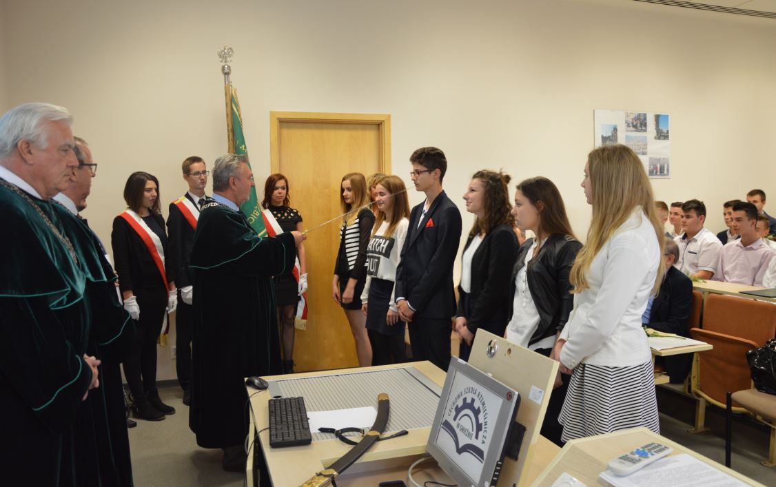 Niezwykle podniosłą chwilą w trakcie Uroczystości, stał się moment ślubowania Uczniów Klas Pierwszych, po którym nastąpiła ceremonia pasowania – oficjalnego włączenia do Społeczności Szkolnej – której dokonał Starszy Cechu, wraz z Podstarszymi.